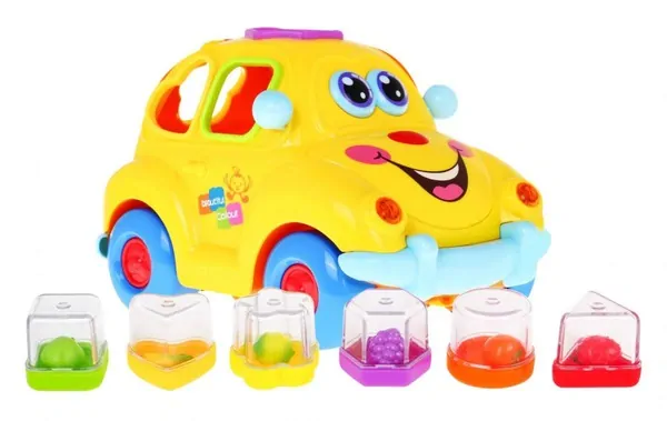 Autíčko samostatne jazdí v sprievode hudobného podkladu, hudbu možno aj vypnúť. Auto má blikajícíc predné aj zadné svetlá, na bočných stenách a streche sa nachádzajú otvory pre vkladanie príslušných kociek. Každá kocka má vnútri ovocie, na vrchnej časti sa nachádzajú písmenká A - B - C a číslice 1 - 2 - 3.