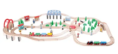 Balenie celkom obsahuje 140 ks vrátane 2 mostov, výhybiek, 2 lokomotív s vagónmi a veľa dekoračných prvkov ako vozidlá, stromy, budovy, dopravné značenie a postavičky ľudí. Táto vláčkodráha predstavuje jednu z najlepších kombinácií príslušenstva a počtu koľají na trhu. Vďaka kvalitnému zpracovní koľajnice sa dobre skladajú a dobre drží tvar. Hračka odolá všetkému tvrdému zaobchádzaniu, lak spnuje všehcny atestácie pre použitie na hračkách.