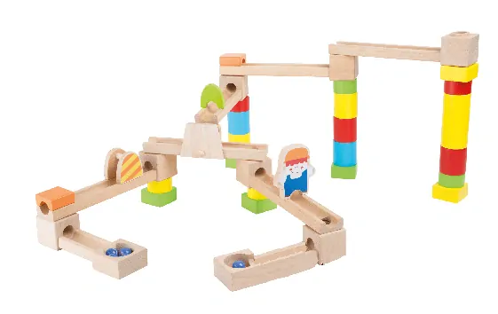 Obľúbená konštrukčné hračka pre dievčatá aj chlapcov! Balenie obsahuje 39 ks drevených doštičiek, stavebných kociek, tunelov a guličiek pre zostavenie ľubovoľnej dráhy, vrátane veselé drevené postavičky.