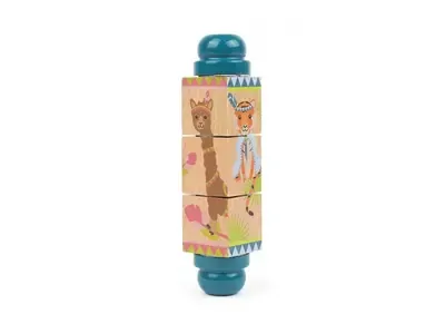 Drevená hračka na precvičenie motoriky a logického myslenia najmenších detí. Cieľom hry je v správnom poradí naskladať na drevenú tyč kocky tak, aby vznikli 3 obrázky zvířítek.