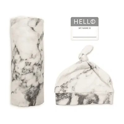 Narodeninová sada Lulujo - Bambusová plienka 120x120 + čiapočka Marble