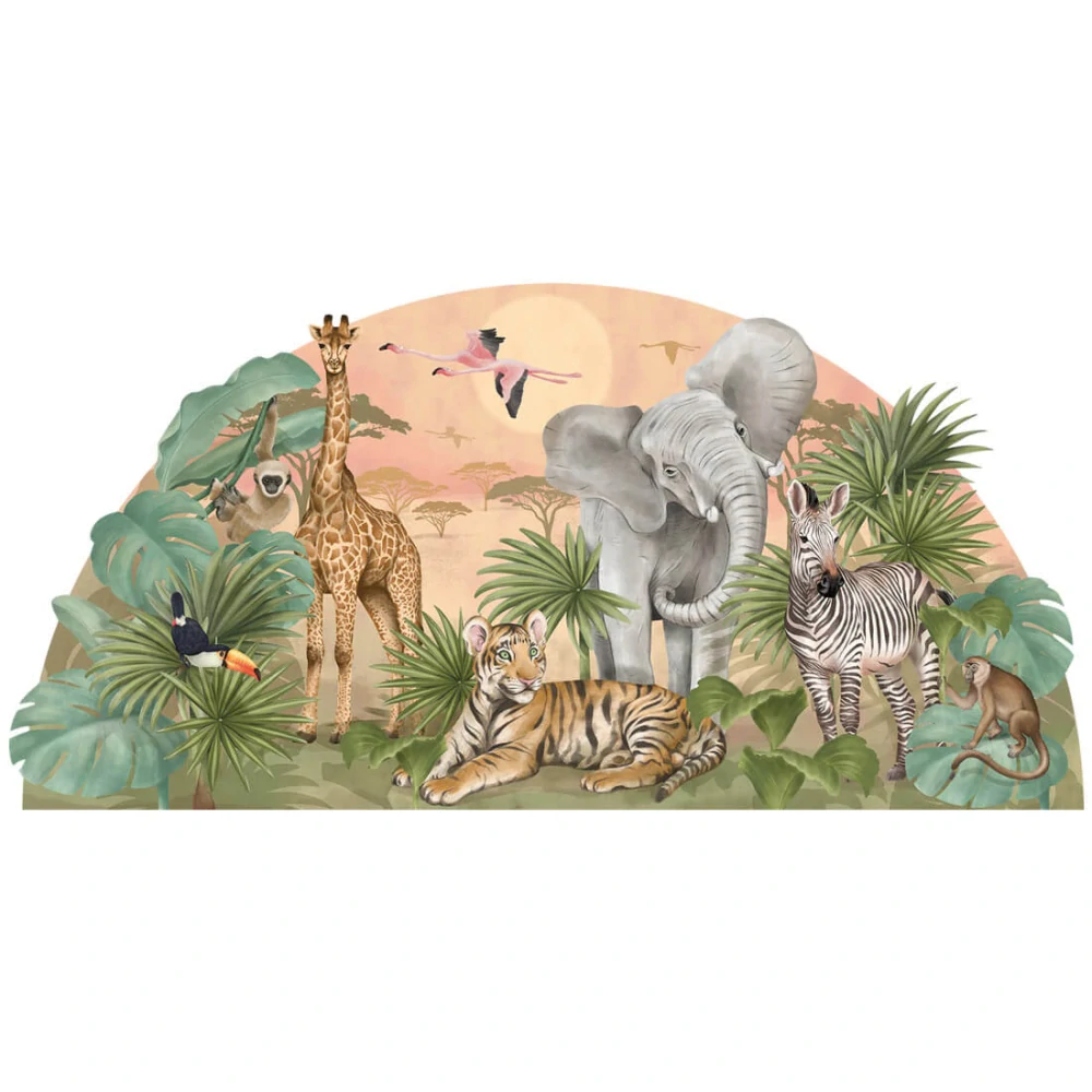 Krásnasamolepkanastenu sojedinelýmdizajnomzvieratzoSafari.Precízne spracovanie,sdôrazomnadetailnétlač,budejedinečnýmdoplnkomdetskej izbyaleboherne.