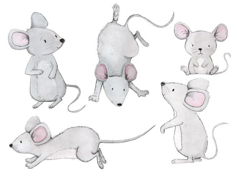 Krásna samolepka na stenu s veselými obrázkami myši, ktorá bude ozdobou detskej izbičky, herne, predsiene ...