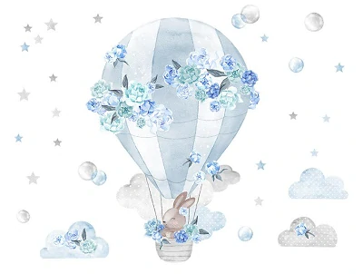 Samolepky na stenu - Látající balón s zajačikom, modrý setSkladom32,00 EUR/ ks26,45 EUR bez DPH