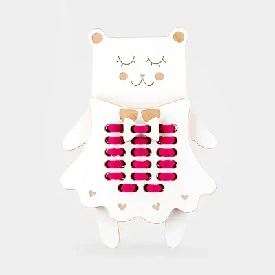 Kvalitná drevená prepletacka v tvare velké medvedice je Montessori pomôckou, ktorá poteší všetky deti a zároveň rozvíja ich kreativitu, trpezlivosť a jemnú motoriku.