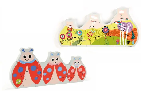 Oops - Obojstranné drevené puzzle pre najmenších - Lienka